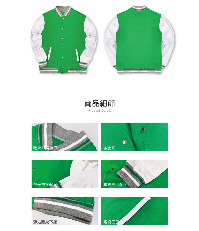 材質:100% Cotton 商品介紹: 經典版型棒球外套,領口、手袖、下擺處,保留經典撞色條紋設計