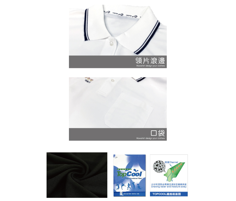 布料:Top Cool 遠東排汗布(100%聚酯纖維) 衣服介紹:吸濕速乾,緊緻衣領牢固耐洗,布料親膚