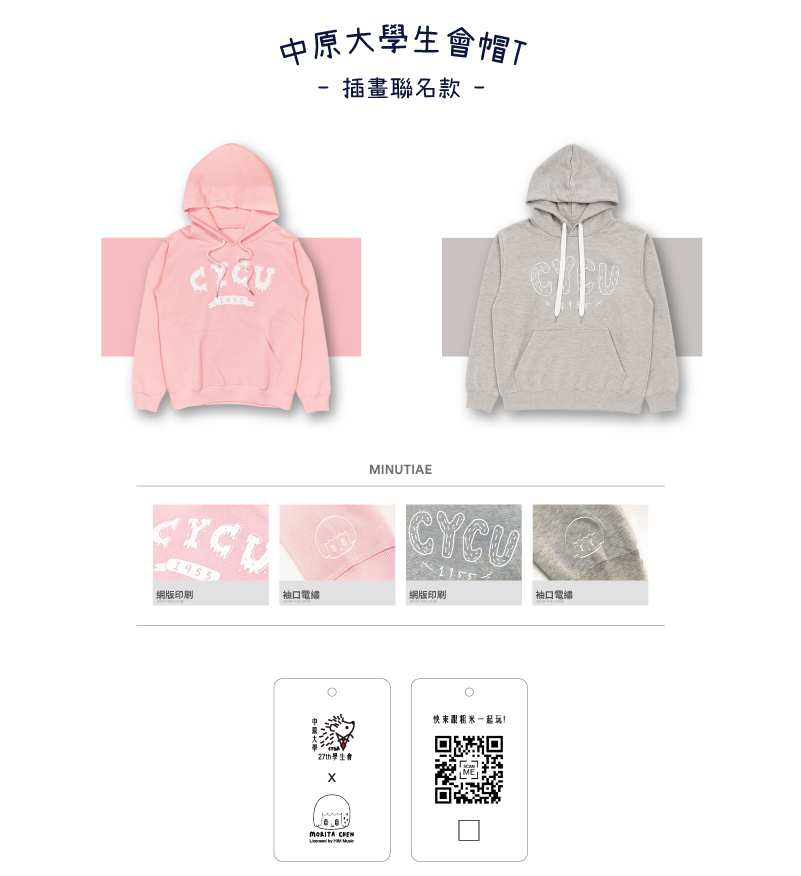 粉紅與麻灰款帽T 是與插畫藝術家-陳森田 的聯名款